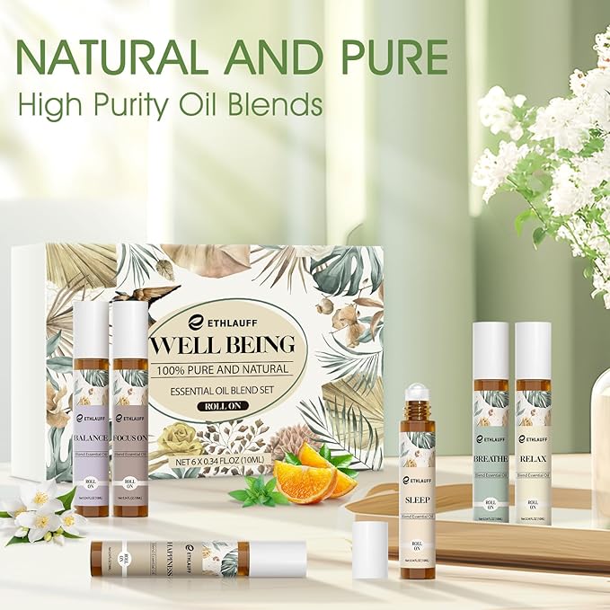 - Skin-friendly essential oils: Our roller ball essential oil is very skin-friendly and has good fluidity. Just rub it gently on your wrist to quickly spread the essential oil. 100% Pure Derivatives From Plant Sources.Contains natural carrier oils. Apply to wrists, chest, temples, palms, soles of feet and behind ears.FOR EXTERNAL USE ONLY !