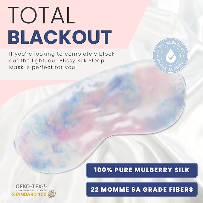 - TOTAL BLACKOUT - If you're looking to completely block out the light, our Blissy Silk Sleep Mask is perfect for you! Made with 100% pure Mulberry silk and 22 momme 6A grade fibers, this mask will keep the light out and help you get a good night's sleep.
