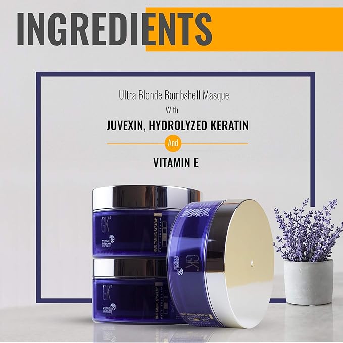 GK HAIR Global Keratin Ultra Blonde Bombshell Masque (7.05 Fl Oz/200 g) Semi-Permanent Long Lasting Hair Toning Color Pigments Moisturizing Styling and Coloring Mask for All Hair Types