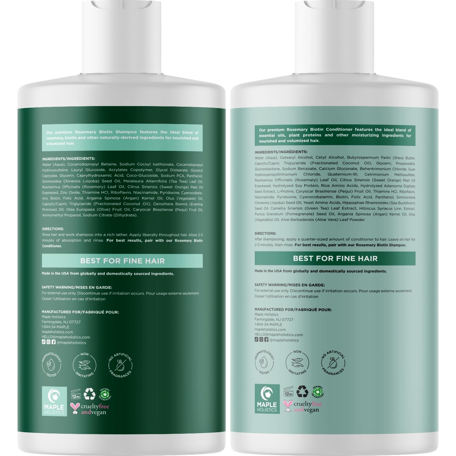 - Maple Holistics Quality - Choose responsibly with our volumizing shampoo and conditioner for thinning hair packed with rosemary essential oil for a moisturizing experience that invigorates the senses