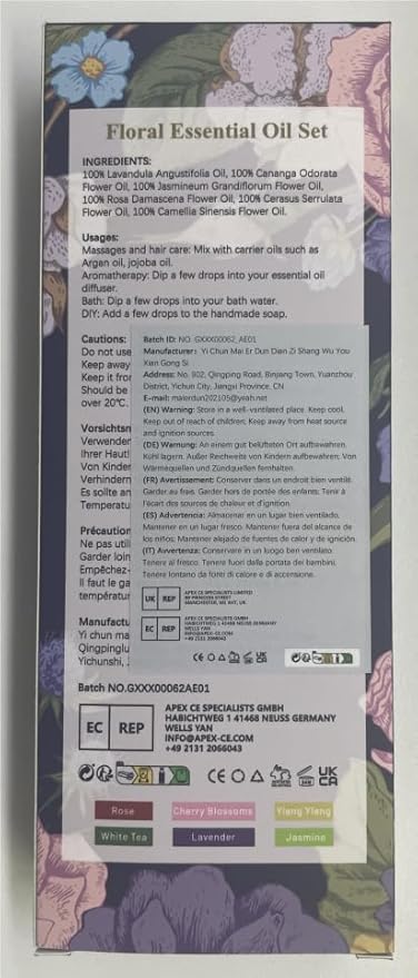- ๐ผใFloral Collection Essential Oilsใ Essential oils set of 6x10ml include - Lavender, rose, jasmine, ylang-ylang, cherry blossom, white tea oil. The floral scents are fresh and elegant. Each oil comes from the fragrance of nature, experience a romantic and relaxing atmosphere.