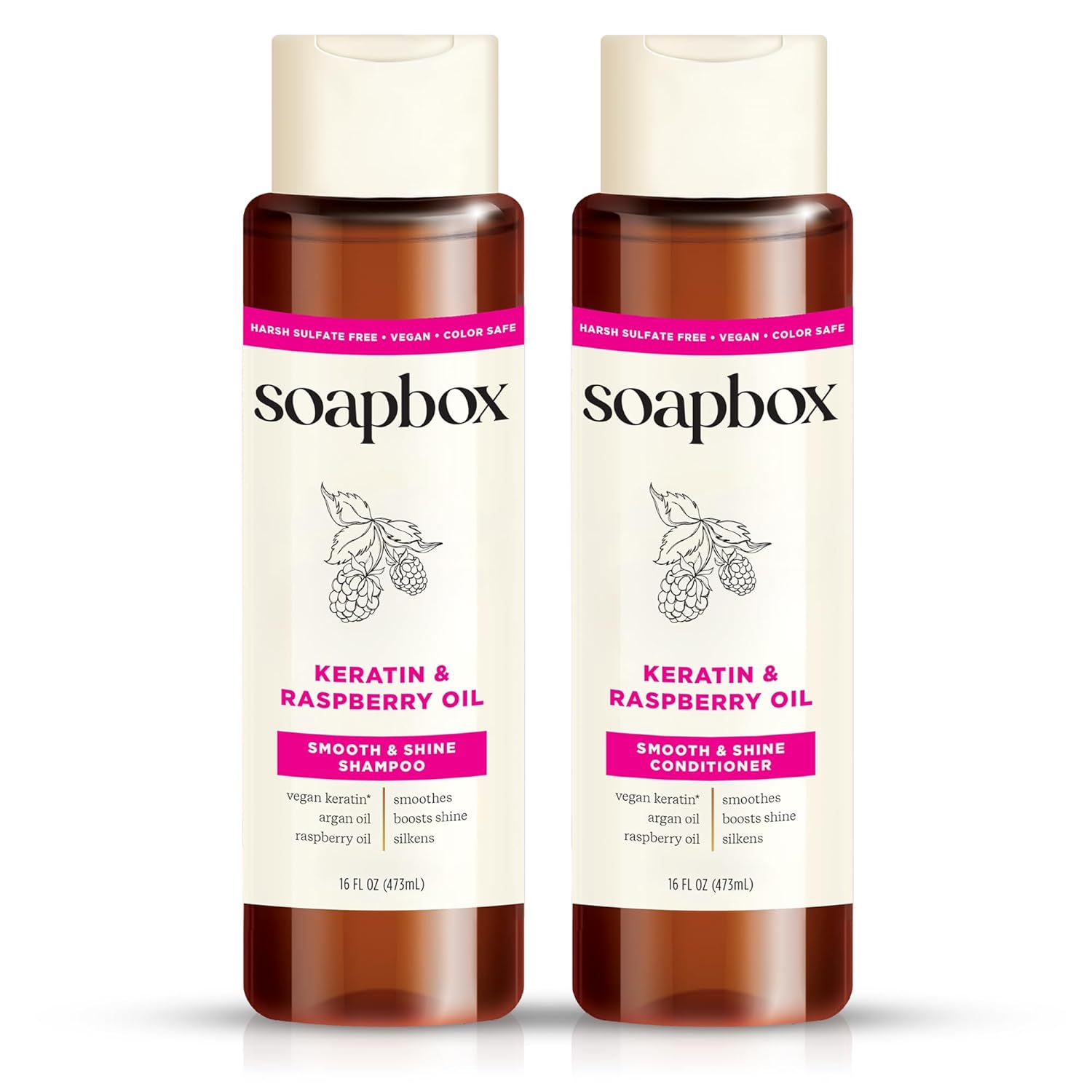 Soapbox Shine Boosting Keratin Shampoo & Conditioner Set with Argan Oil, Pack of 2 Harsh Sulfate & Paraben Free, Silicone Free, Color Safe, and Vegan Hair Products, 16 Ounces Each