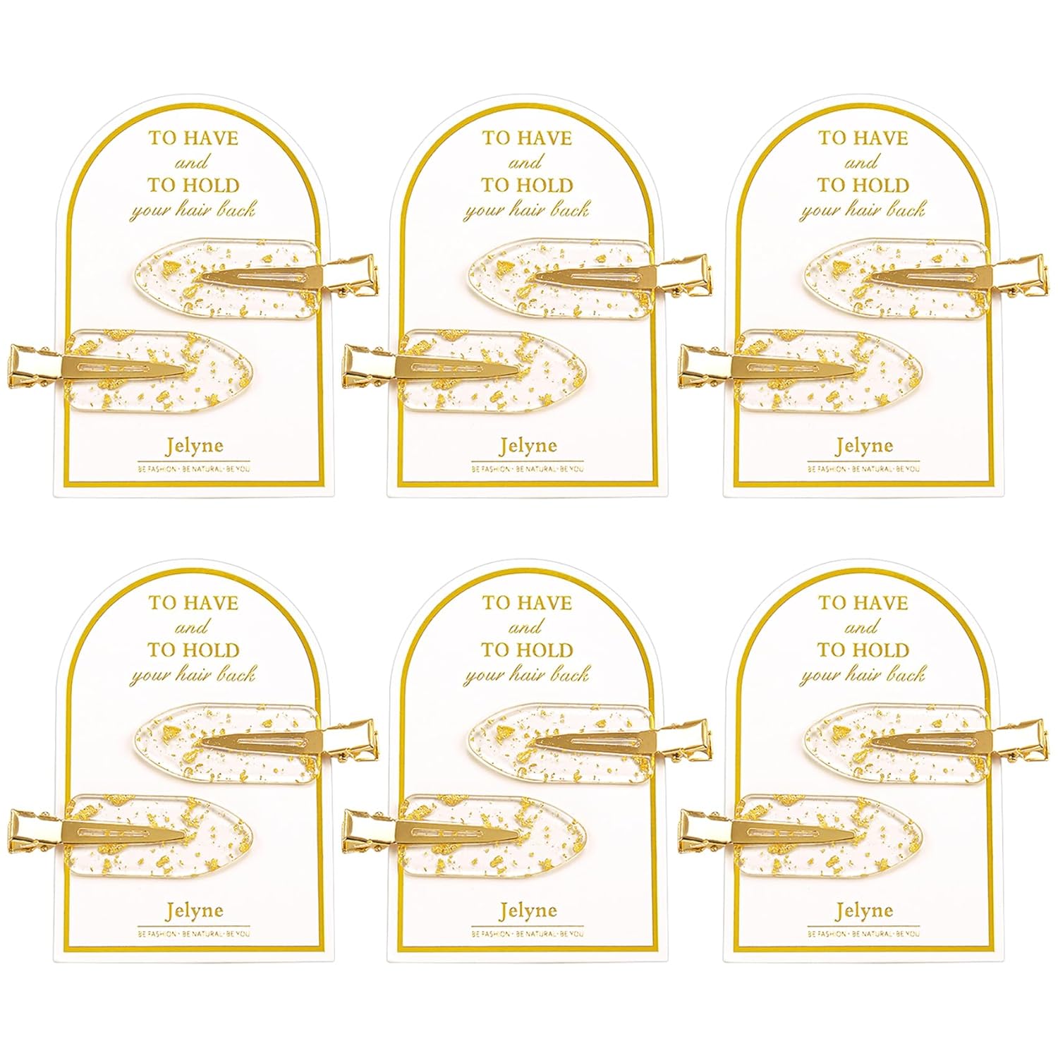 No Bend Hair Clips, 12Pcs/6cards Resin & Stainless Steel No Crease Hair Clips, Gold Glitter Bridesmaid Proposal Gift Hair Clip for Makeup Styling Hair accessories Hair Setting Clips for Bangs