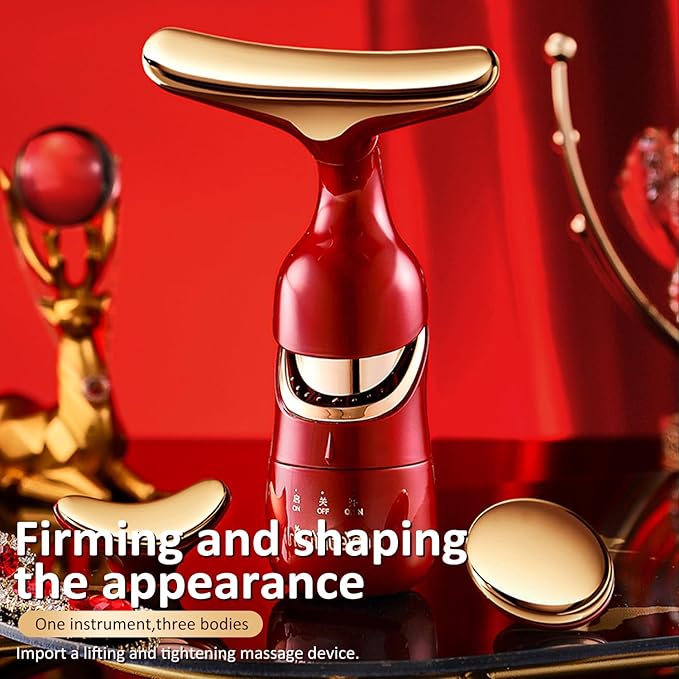 MMRH Firming Wrinkle Beauty Devicer for Facial/Neck/Eye, Multifunctional Vibration Massage Instrument, 3-in-1 Facial Skincare Instrument for Skin Care for Improve,Smooth and Tightening Skin (red)