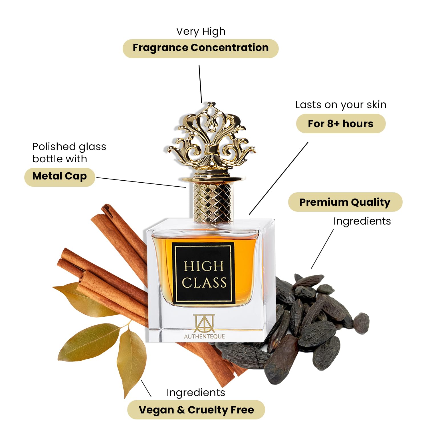 AUTHENTEQUE- High Class - Luxury Unisex Fragrance for Men and Women 3.4OZ(100 ml) - Extrait de Parfum - Long Lasting Unisex Perfume for Daily Wear - Vegan & Cruelty Free
