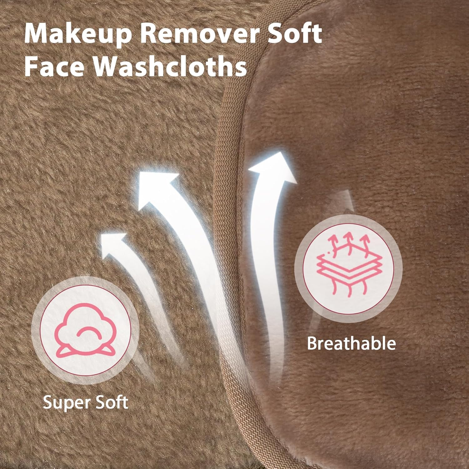 Makeup Remover Cloth, 6" x 6" Make Up Towels Reusable Face Cloth for Washing Face, Makeup Remover Pads Microfiber Face Washcloth with Mesh Bag, Just Water, 12 Pack, Light Brown