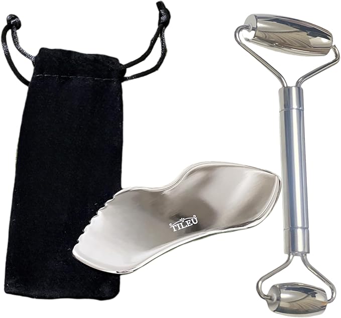 - 【Revitalize your skin】TILEU's Facial Skin Care Tools enhances your skincare routine. Lift and massage your skin, reduce puffi ness, diminish wrinkles, and lighten under-eye bags and dark circles. This set provides deep tissue massage and relaxation, making it the perfect choice for your daily regimen. Face massager metal face roller gua sha facial tool