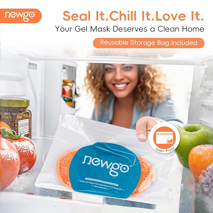 - Soothing Relief for Eyes & Headaches - NEWGO cooling eye mask is a versatile eye mask that offers effective relief for puffy eyes, headaches, dry eyes, dark circles, swelling around the eyes, post-surgery recovery.The eye ice pack a good option for those looking for a convenient and portable solution for eye care, or relaxation especially after a long day or when dealing with eye strain.