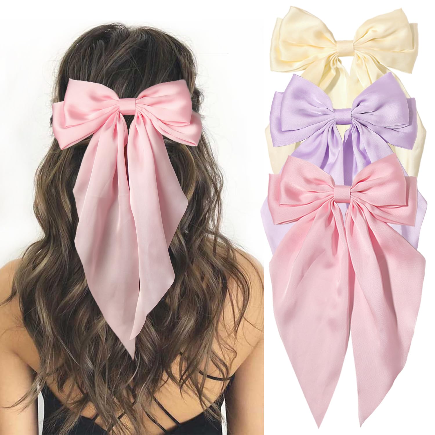 - Women Hair Accessories - The 3pcs hair bows are so elegant, made with very high-quality satin fabric tied in a bow with an alligator clip. It is about 6.5"*10.6" in length and width