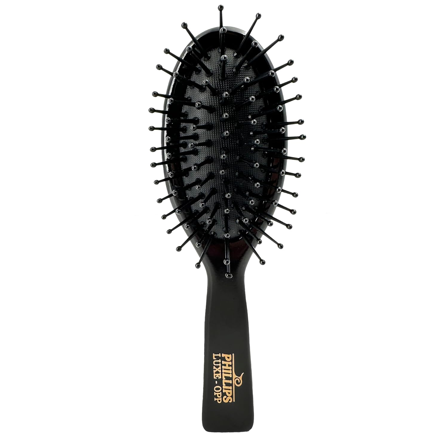 - Take on tangled or thick hair with confidence using the Luxe Oval Paddle Detangler brush from the Luxe Series by Phillips Brush. This 7 inch tall brush has firm, ball tipped nylon bristles that gently massage the scalp while separating tangled strands of hair!
