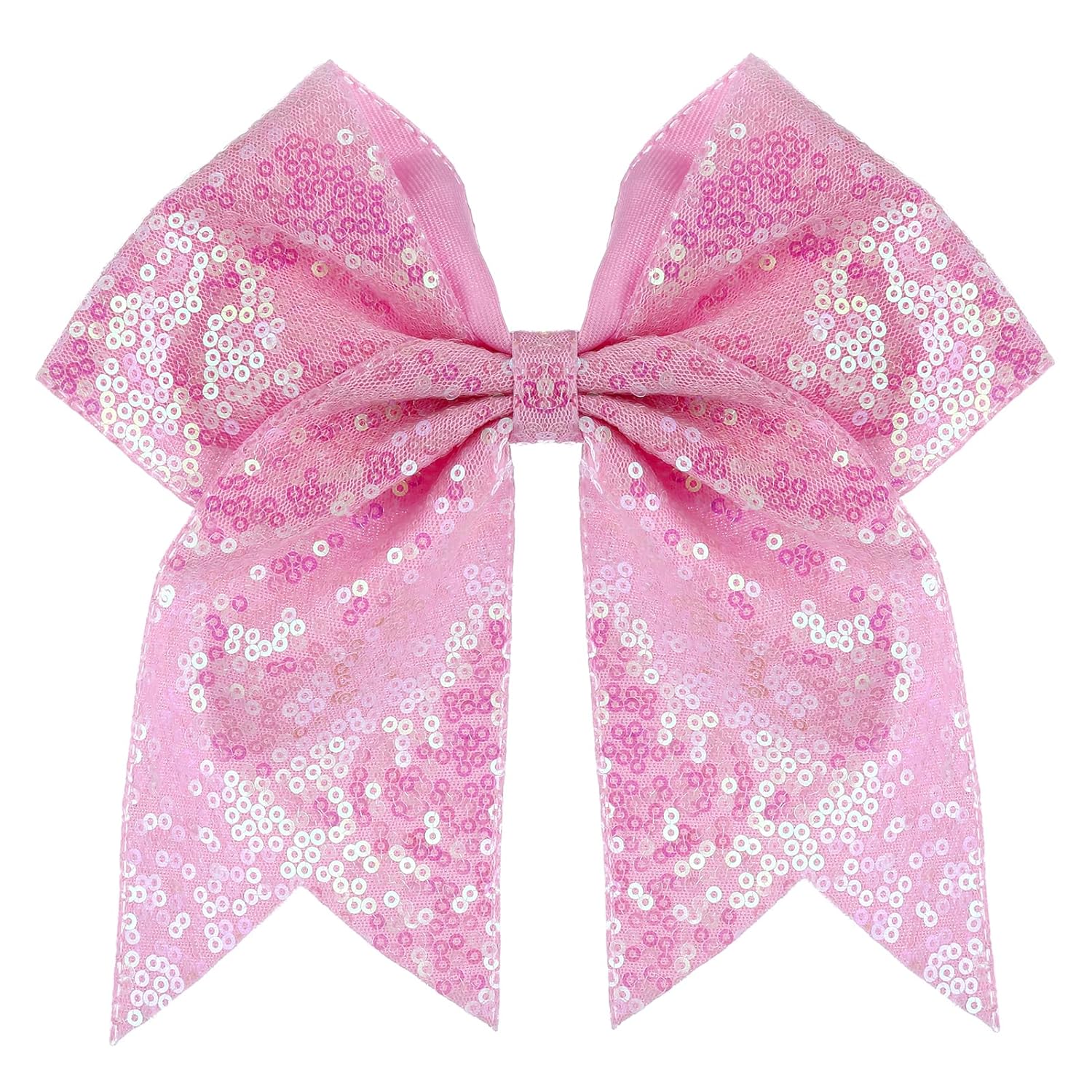 Large Glitter Cheer Bows Clips, Jumbo Big 7 Inch Cheerleading Sequin Hair Bow Hair Accessories for Teens Girls Football Sports Cheerleader Outfit Uniform (Pink)