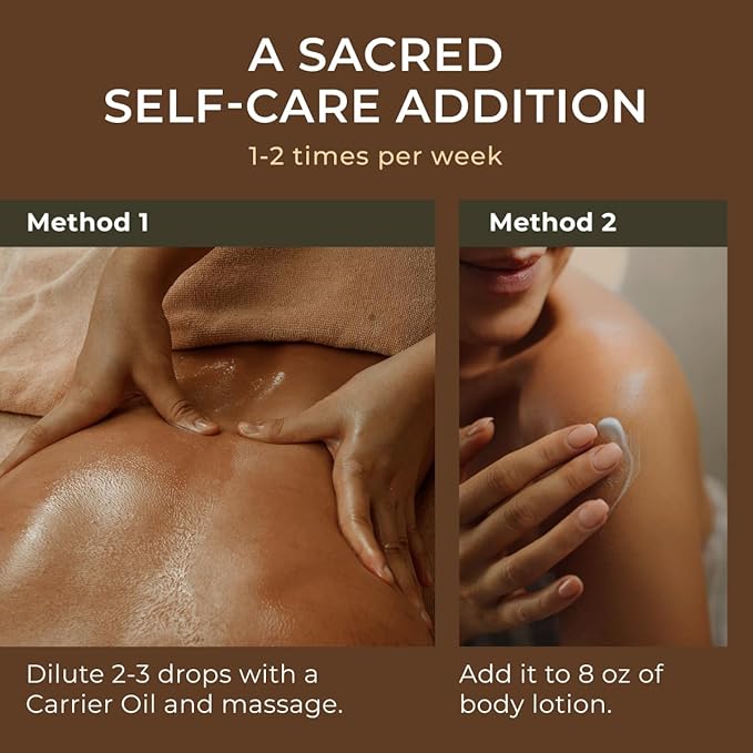 - Frankincense essential oil for body comfort. Frankincense oil has warming, soothing properties may be a wonderful addition to massages. Dilute with a carrier oil and massage targeted areas with a roller massage ball.