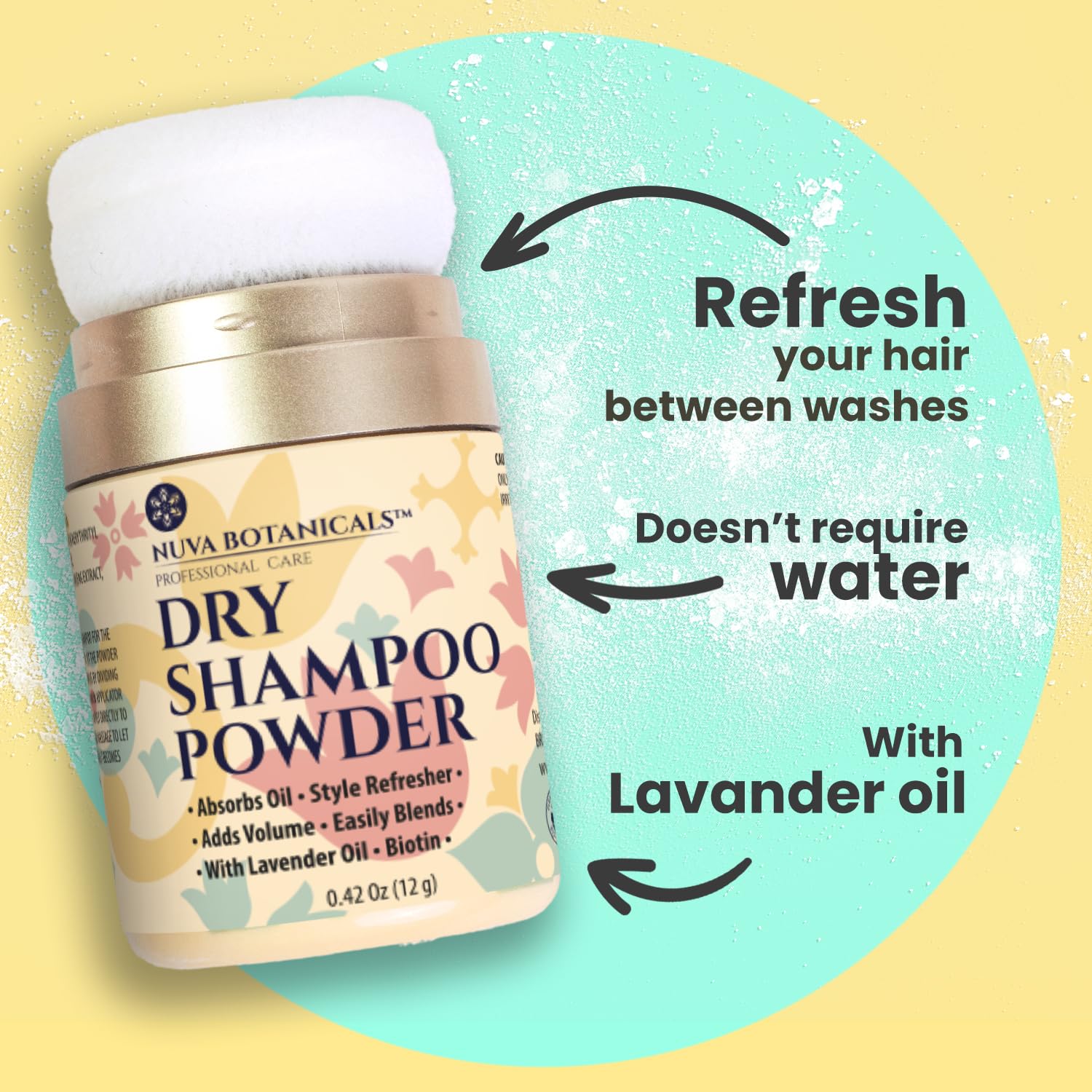 Non Aerosol Dry Shampoo Powder with Biotin - Lavender Extract and Korean Ginseng - Volumizing Travel Size (0.42 oz, 2 Pack) - Gifts for Her