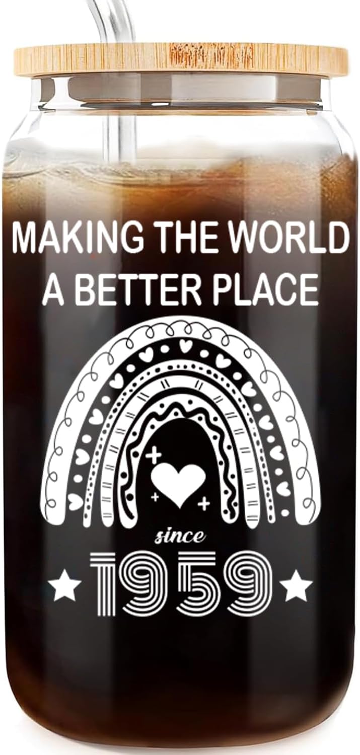 65th Birthday Gifts for Women 65 Year Old Birthday Cups 1959 Birthday Present Happy 65th Birthday Cute Glass Cups with Lids and Straws 65th Birthday Party Decorations Gifts Ideas 16 Oz Can Glass
