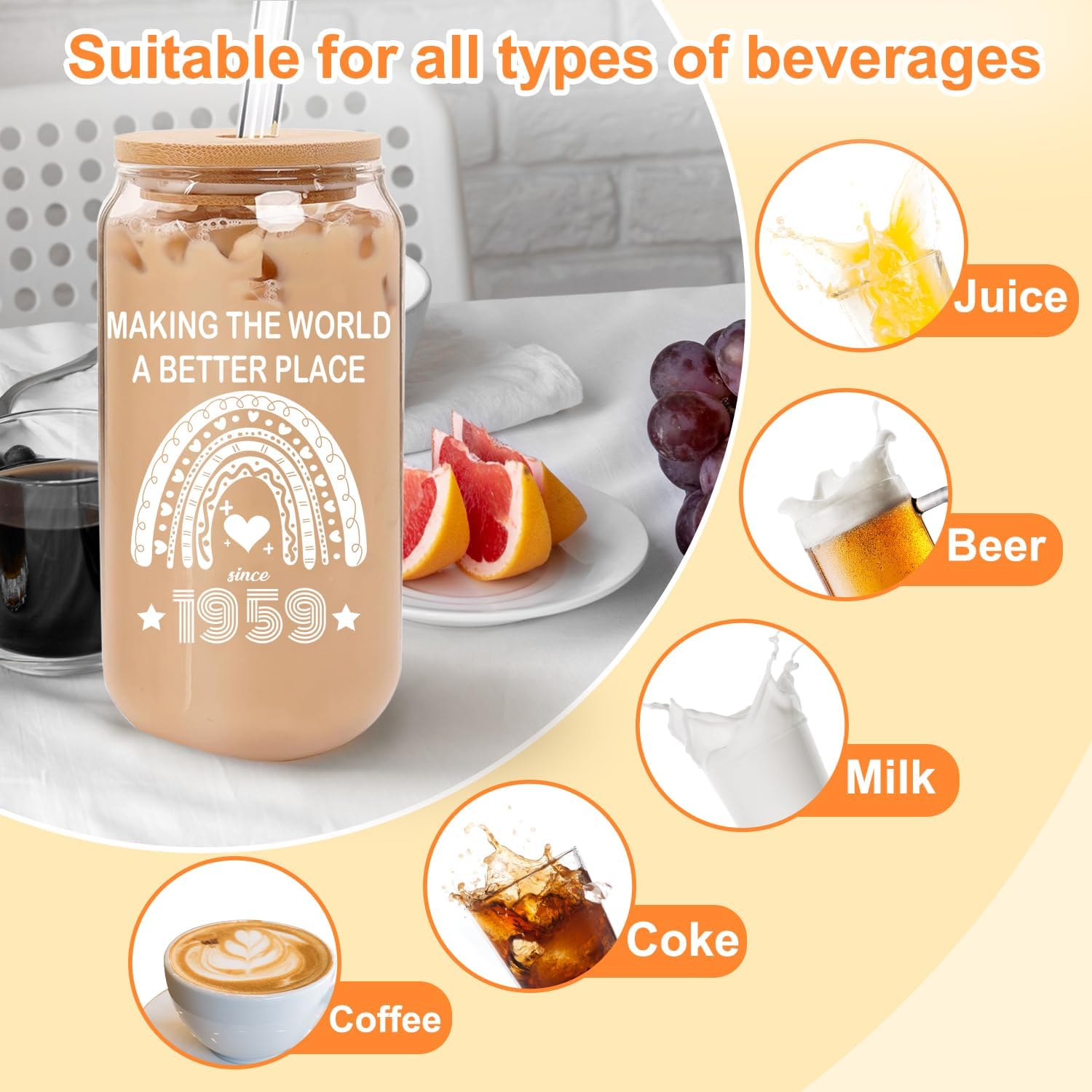 - 【65 Year Old Birthday Gifts】The glass cups with lids and straws is a practical cute birthday gifts for friends, BFF, sister, daughter, girlfriend, or colleagues, anyone who are turning 65. This a great gift for any other occasion, also great 65th birthday decorations for her.