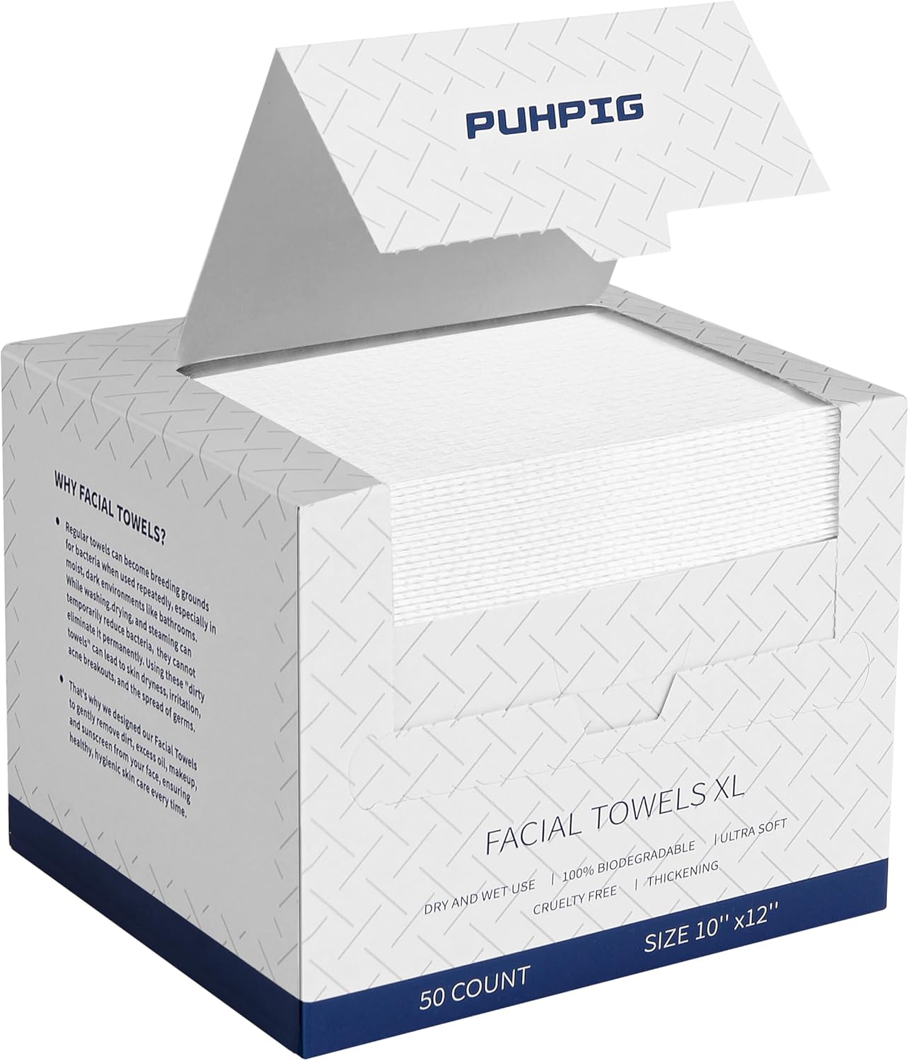 - 🌸【Large Size Clean Towel 】50 count/1 Pack clean face towel XL, 10.2 " x 11.8 " large size paper towels enough to cover the entire face, ideal for sensitive skin and for traveling.