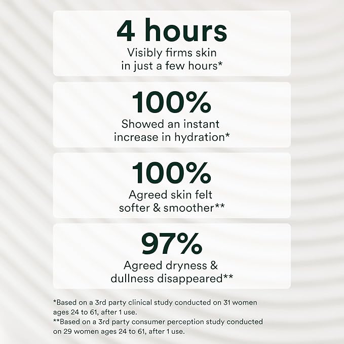 - Clinically Shown Firming: Our ultra-hydrating, lightweight body lotion is scientifically shown to visibly firm skin in just 4 hours. Packed with clinically shown ingredients including undaria seaweed and hyaluronic acid, to deliver lasting hydration for radiant, revitalized skin.
