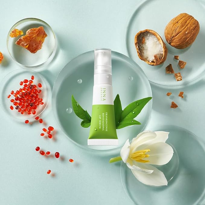 INNA Organic Lip Serum, Moisturizing, Fine Line Care & 100% Vegan, EWG & COSMOS Certified | Frankincense Essential Oils Infused Skin Care | Luxury Clean Beauty