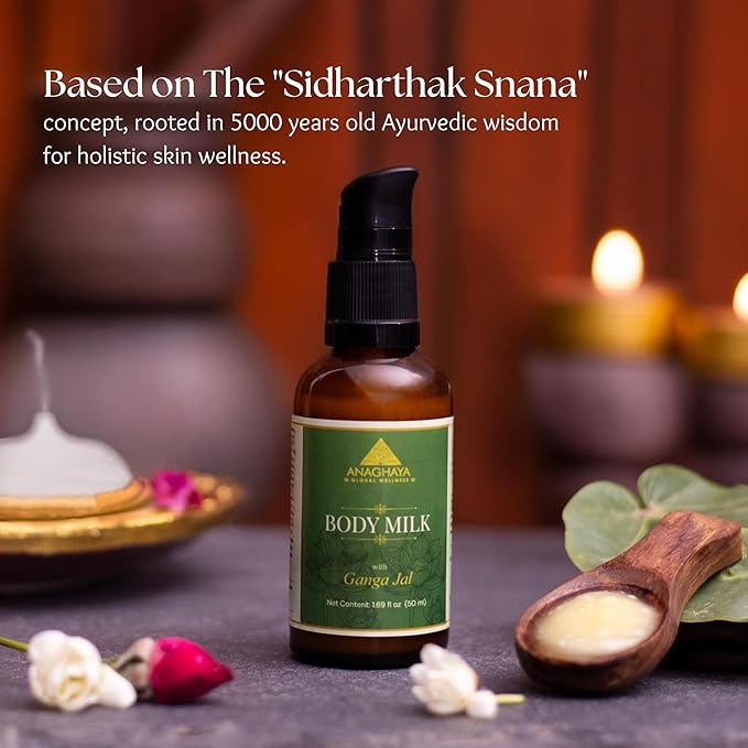 Body Hydrating Milk for Dry Skin - Daily Moisturizing Lotion with Ganges Water & A2 Clarified Butter, 1.69 fl oz | Softens Skin, Fast Absorbing, Lightweight, Non-Greasy, 100% Natural Ayurvedic Product