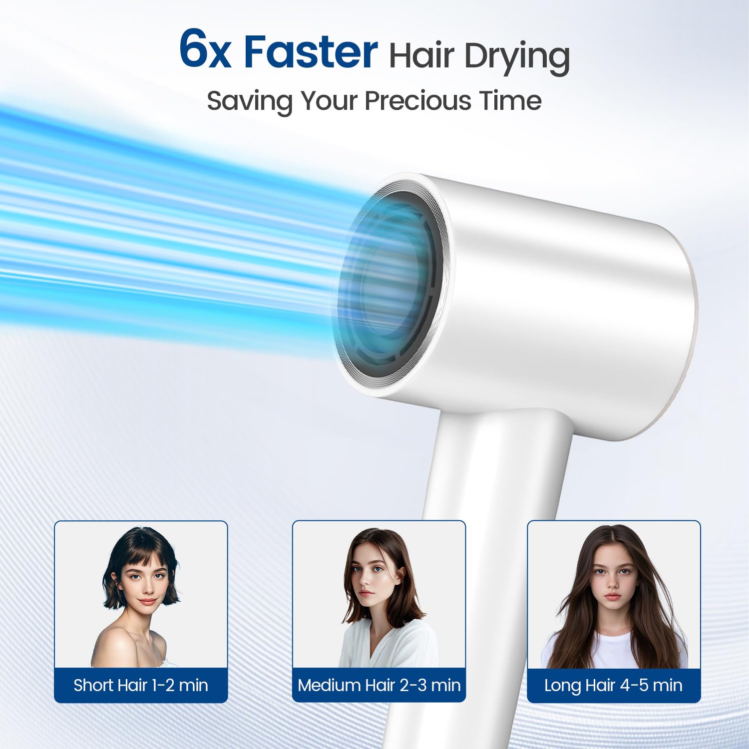 - Industry-Leading High-Speed Brushless Motor – Delivers a powerful airflow of 32m/s, drying hair up to 6x faster than traditional dryers. Save time while protecting your scalp and hair from heat damage.