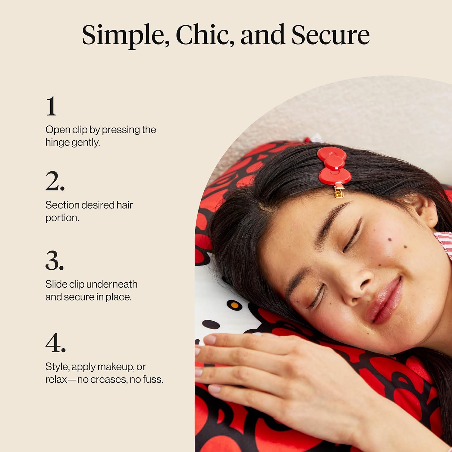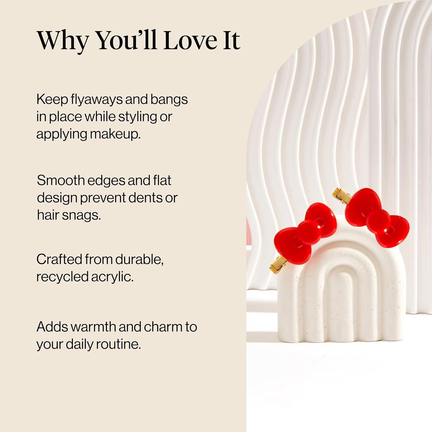 Hello Kitty x Kitsch Creaseless Hair Clips for Women - No Crease, No Bend Hair Clips for Styling, Bangs, Makeup Application, Face Wash | Durable Plastic - Red Bow Design | Ideal Gifts for Women, 2pc