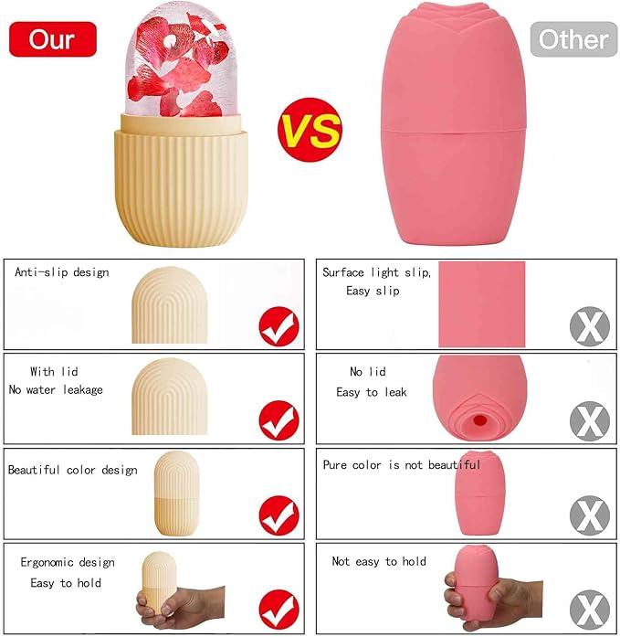 - โ๏ธ HIGH-QUALITY: This ice roller for face is made of high-quality silicone material, which is repeatable and durable. Small and light design, ergonomic hand design is easy to grasp, ice roller head can slide on the skin,It is also easy to carry.