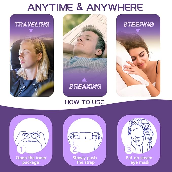- 【Lavender Self-Heated Eye Mask】: Relieve eye fatigue, moisturize eyes, and improve sleep quality with our steam eye masks. Reduce puffiness, dark circles, and dryness in just 30 minutes.