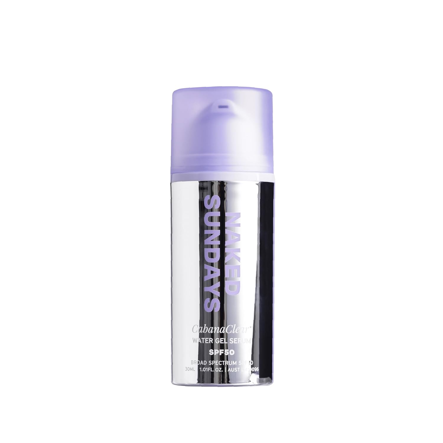 Naked Sundays CabanaClear SPF 50 Water Gel Serum - Invisible, Lightweight, & Hydrating Facial Sunscreen with Hyaluronic Acid, Broad Spectrum, Oil-Free, Silicone Free, Fragrance-Free for All Skin Types