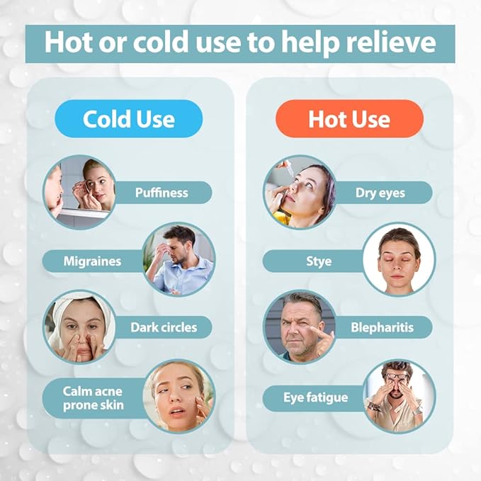 - ❤️Adjustable & Unisex Fit - With an adjustable head strap, our hot and cold eye mask is sure to fit perfectly on all different head shapes and are suitable for women, men, kids. Designed for long hours of comfortable wear as you relax and rest, and a secure fastener ensures the cold eye mask firmly stay on your eyes even as you toss and turn in bed.
