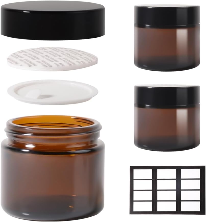 - 【ELEGANT DESIGN】Empty glass jars have a more elegant and high-quality appearance, protects your light-sensitive lotion from degrading, you don't need to worry about ultraviolet light causing your mixtures to lose potency over time