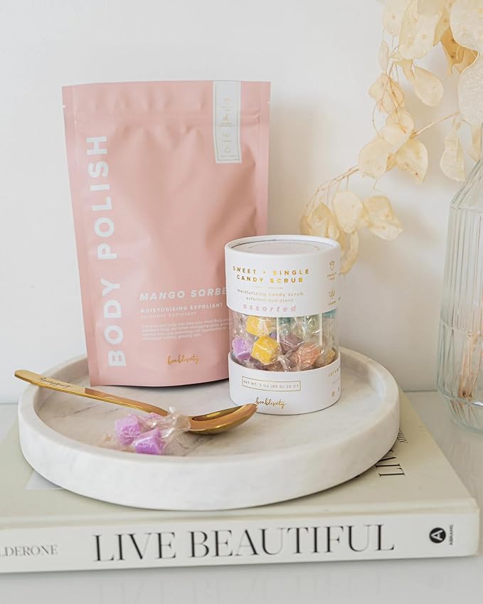 - Easy and Mess-Free – This exfoliating body scrubber includes a gold spoon, so you never have to touch it directly, keeping the scrubs dry and clean for next use. Best applied after shower, scoop just enough to apply to your skin until it's absorbed.