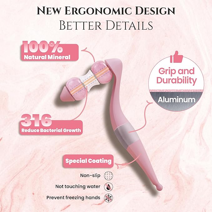- Large Size: The largest facial roller in the market, twice larger size of a regular face roller, exclusively designed for the contours of the American user's face, fits the face better, especially the cheekbones and jawline contours, it ensures that skincare products are better absorbed and massaged into every inch of the skin, enhancing the lifting effect by more than 50%;