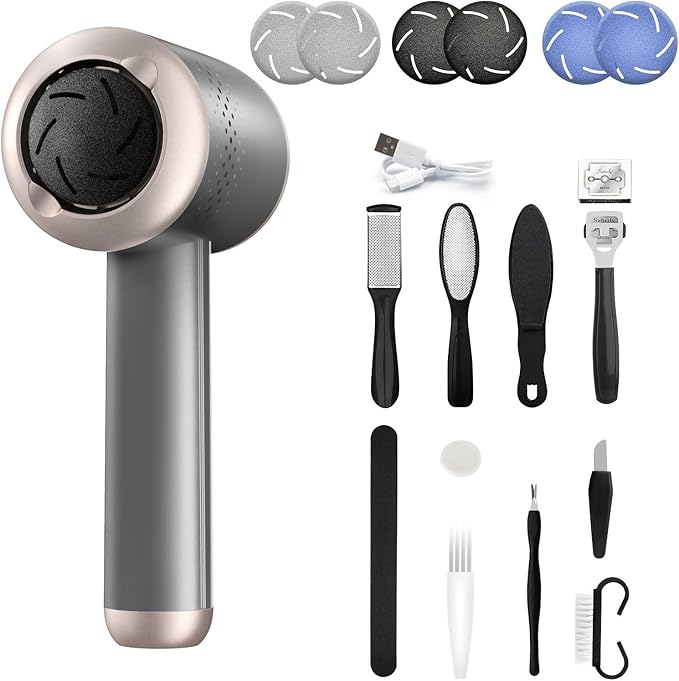 - 6 Replace Grinding Head: MAGITECH electric foot grinder have three types of grinding heads(Coarse, Fine, Polishing)*2 and 10in1 pedicure tool set applicable to different dead skins and calluses. You can choose suitable grinding head according to the skin to care, so that keep your foot skin always health.