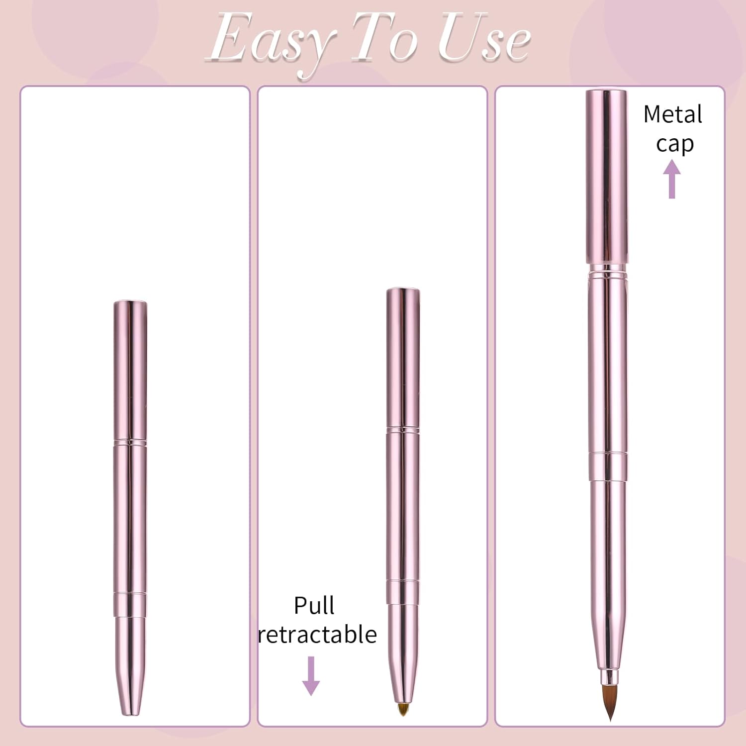 - QUALITY MATERIAL - Our retractable lipstick brush is made of quality bristles with soft and smooth touch. The metal handle is lightweight and not easy to deform.