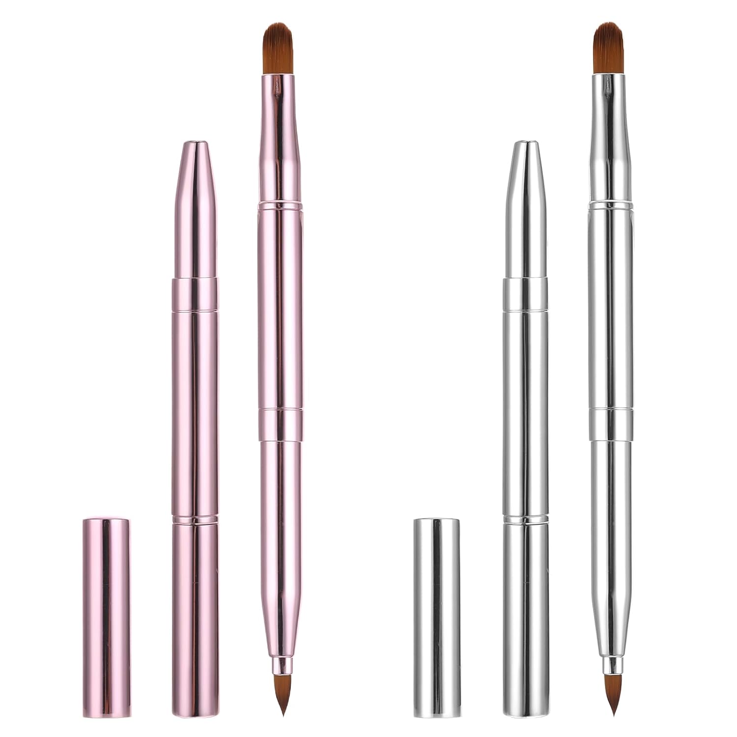 2 Pack Retractable Lip Brush for Lipstick, Double-Ended Lip Makeup Brushes Retractable with Cap Lip Gloss Lipstick Brush Applicator Travel