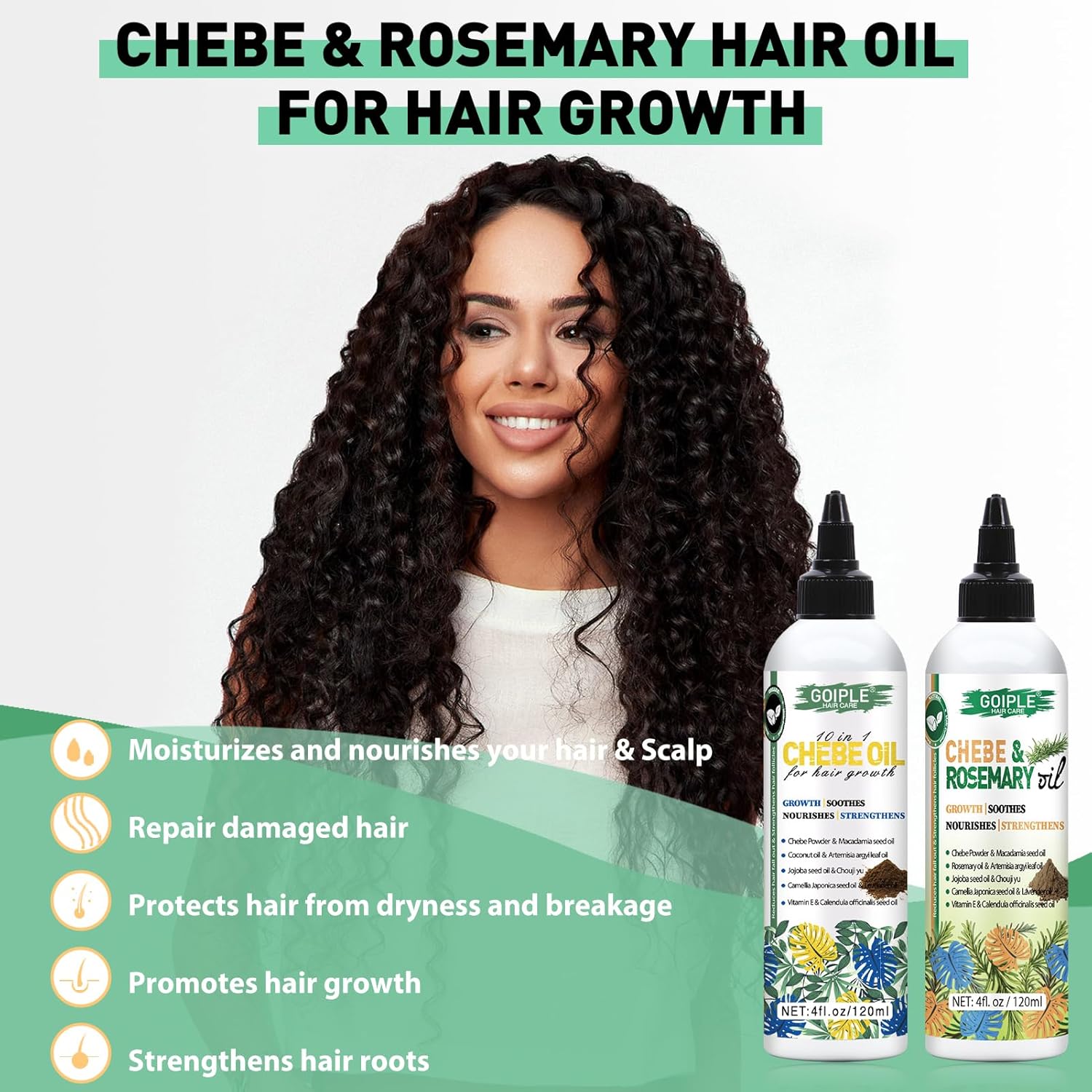 - 10-in-1 Hair Oil for Hair Growth: Rosemary hair oil for hair growth is a natural formula that strengthens hair roots. African chebe powder oil promotes hair growth and hair loss. The combination of rosemary essential oil and chebe powder is very helpful for dry scalp.