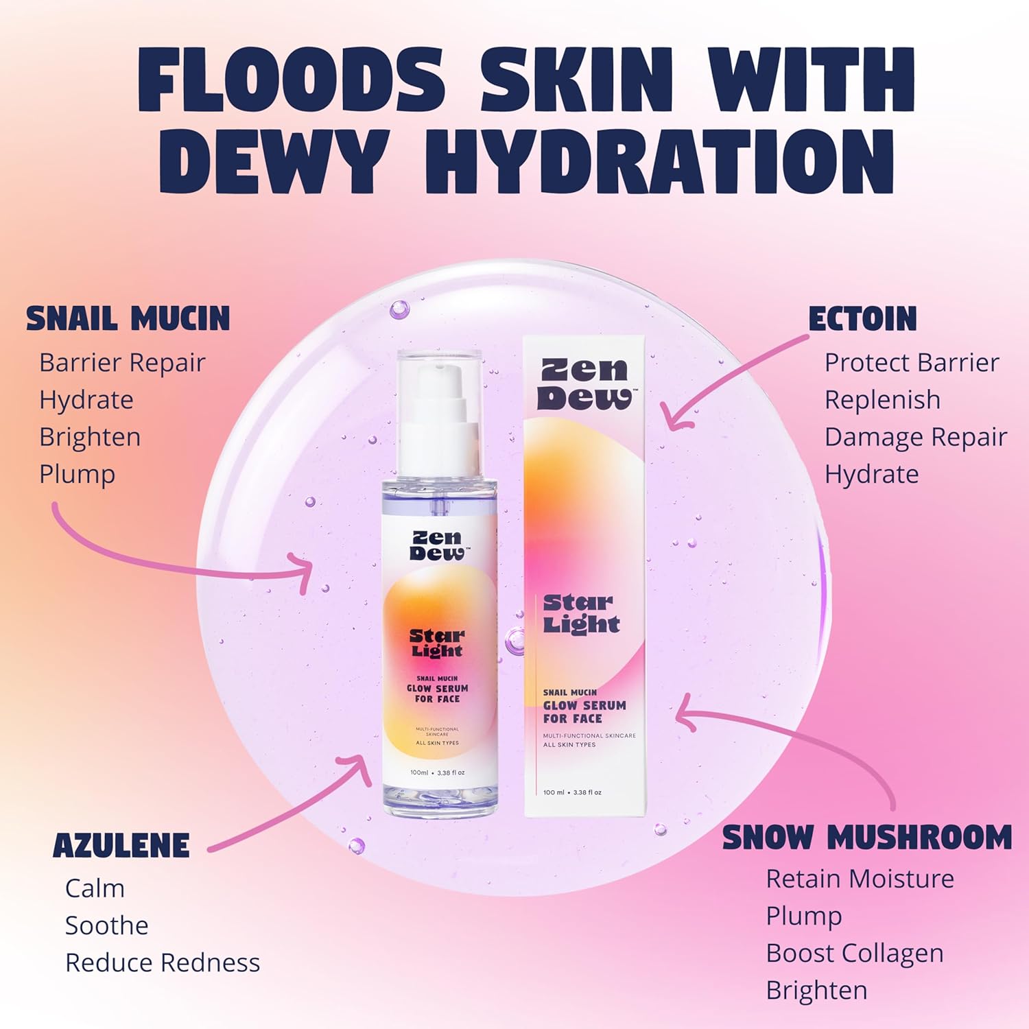 Star Light Korean Snail Mucin Serum (3.38 oz) Brightening & Hydrating K Beauty Face Serum for Glass Skin Glow – Smoothing Korean Skin Care