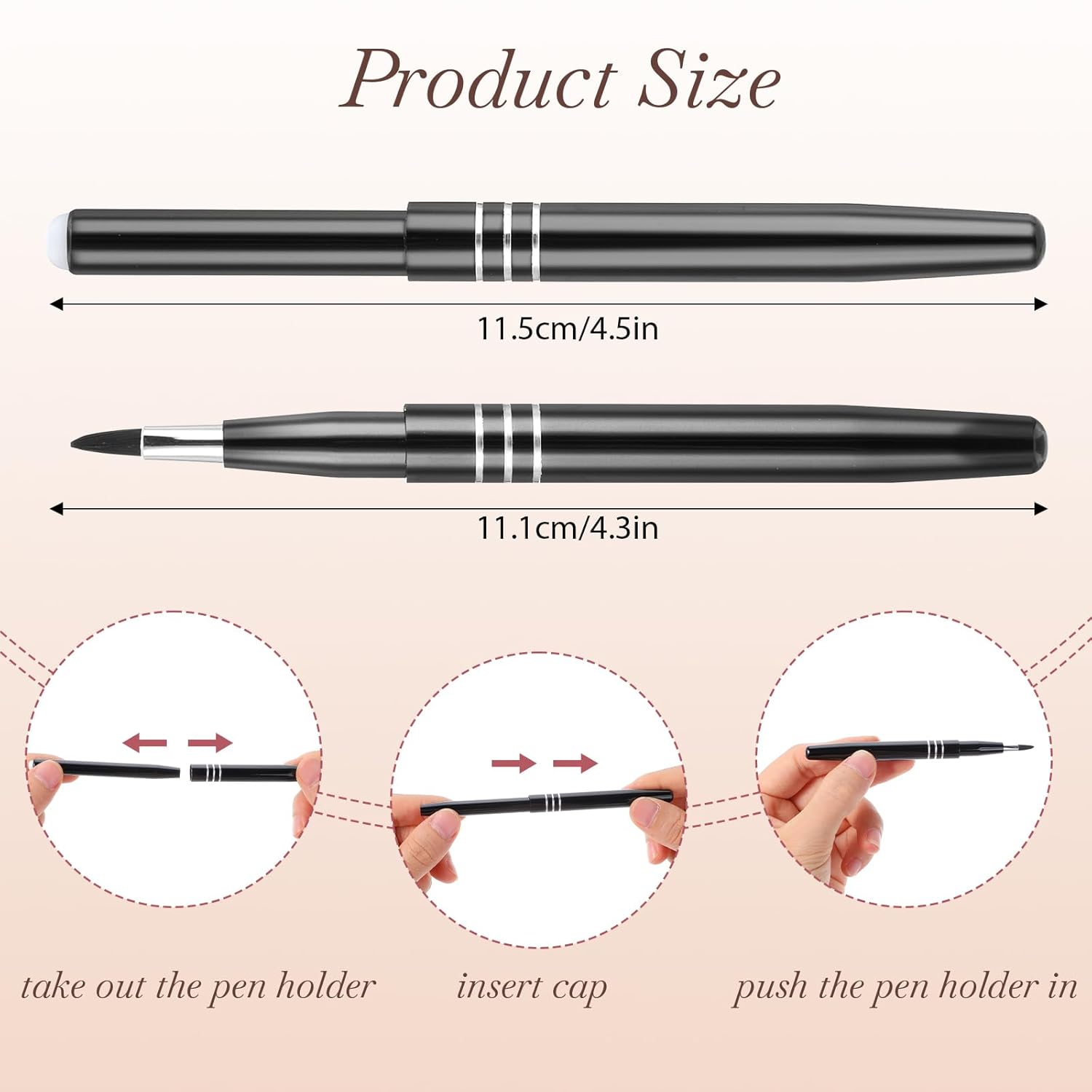- EASY TO OPERATE - Before use, please remove the cap of retractable makeup brush and put it on the other end of the handle, then push the brush upward to use, after use, pull the cap out from the bottom and the brush will retract back into the body of the holder.