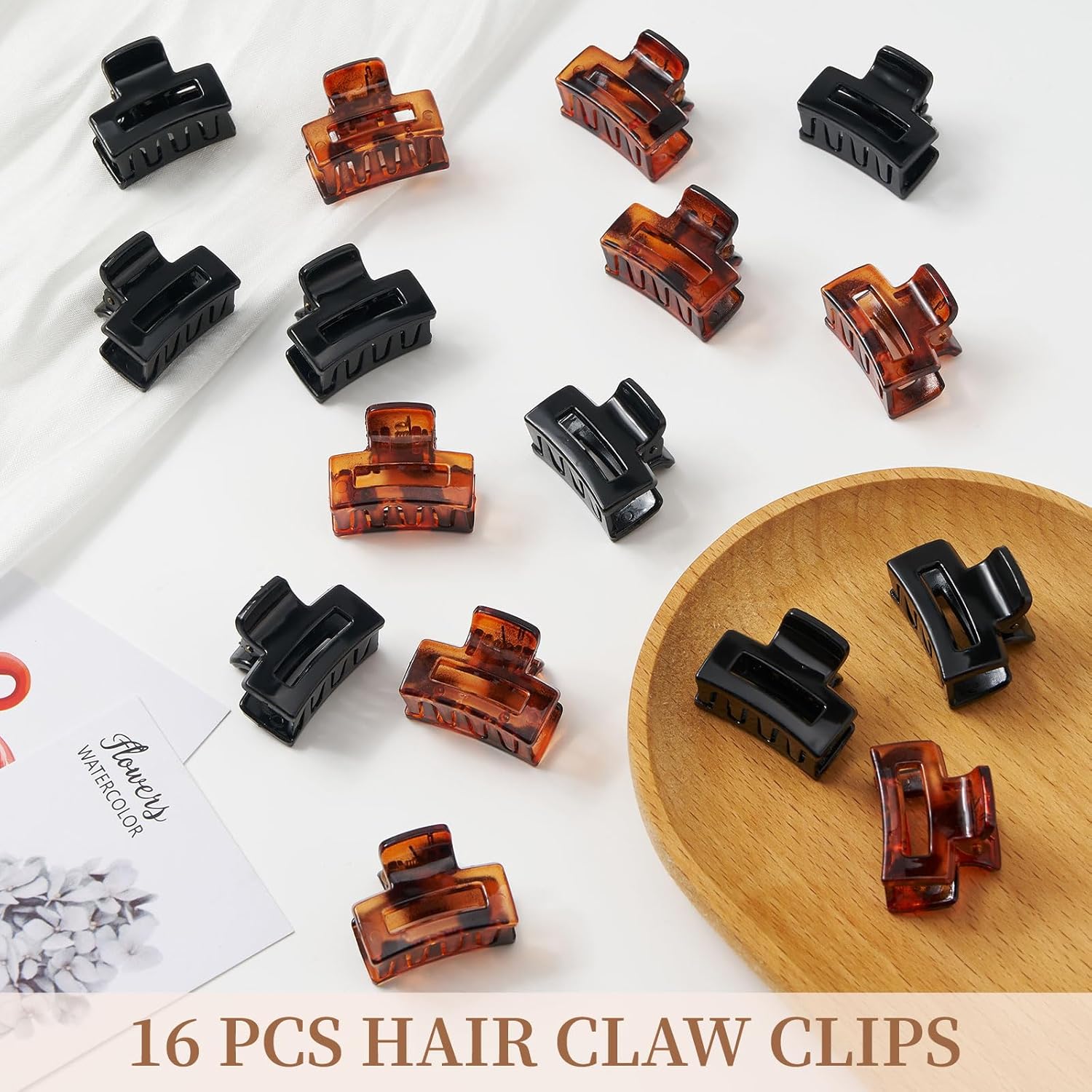 - 【Order Includes】- Our mini square hair claw clip set consists of a total of 16 pieces (8 pieces black&8 pieces brown), size:0.98in (2.5cm).