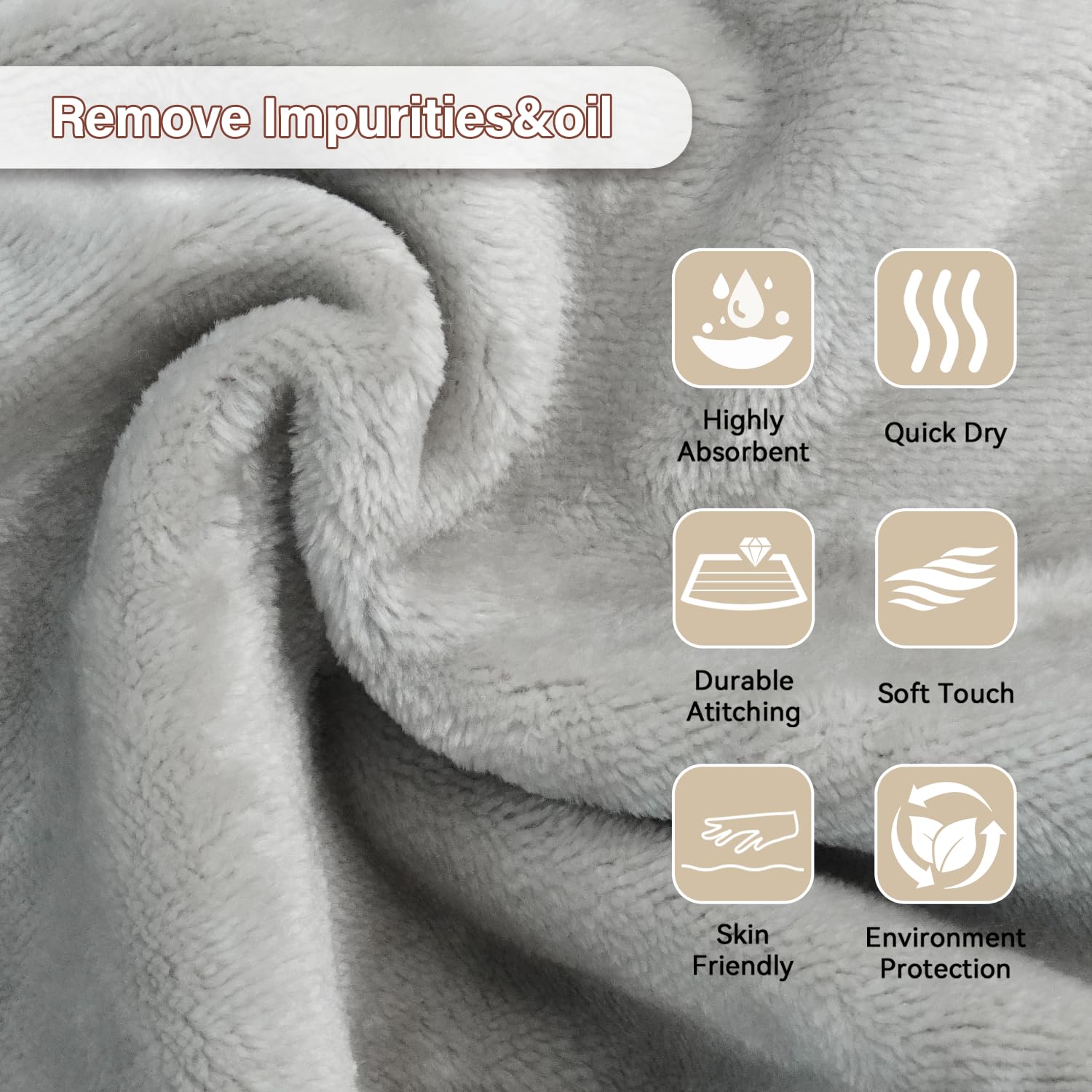 Nugilla Reusable Face Wash Cloths, 8 Pack Soft Microfiber Makeup Remover Towels for Women (Light Grey)
