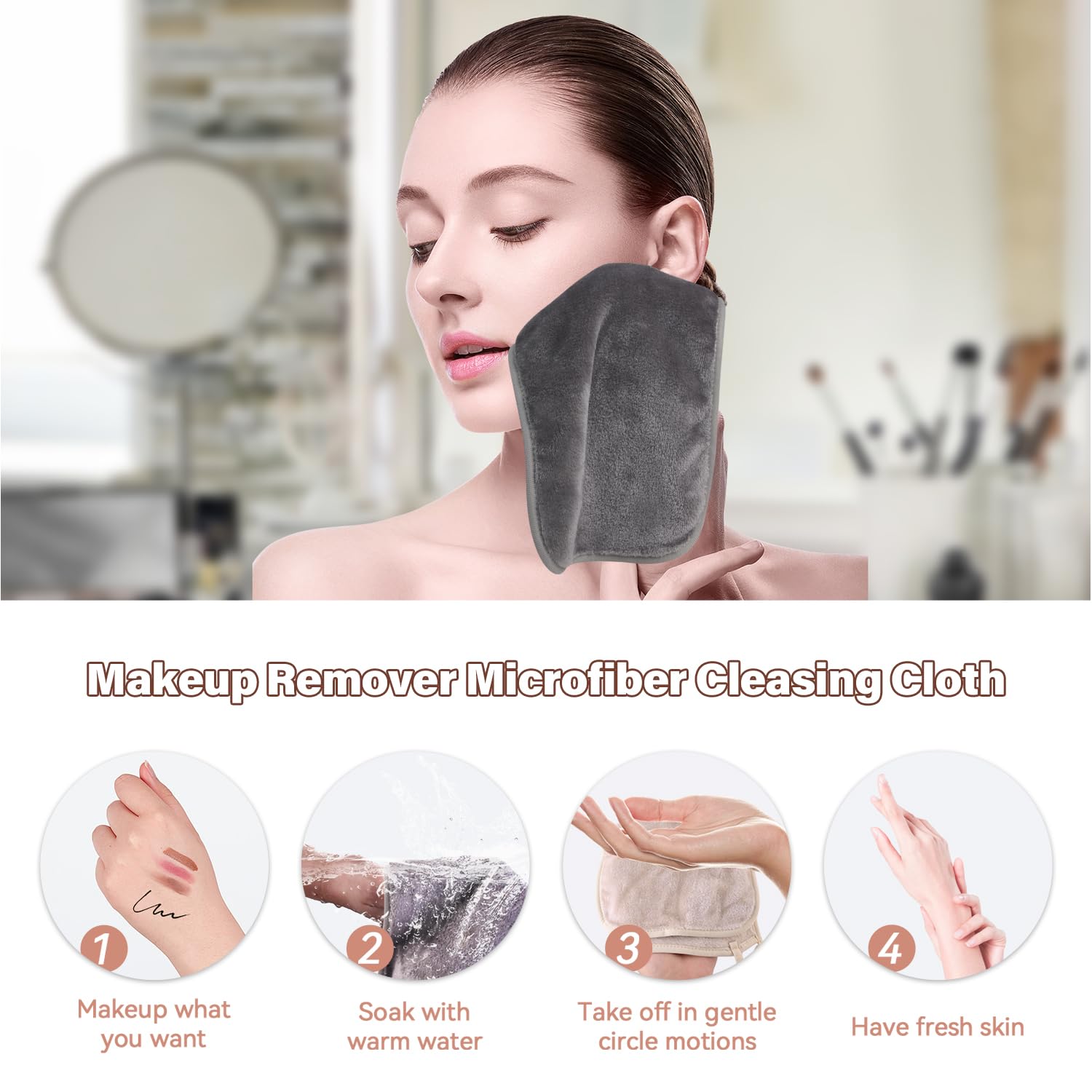 Nugilla Reusable Face Wash Cloths, 8 Pack Soft Microfiber Makeup Remover Towels for Women (Beige/Cool Grey)