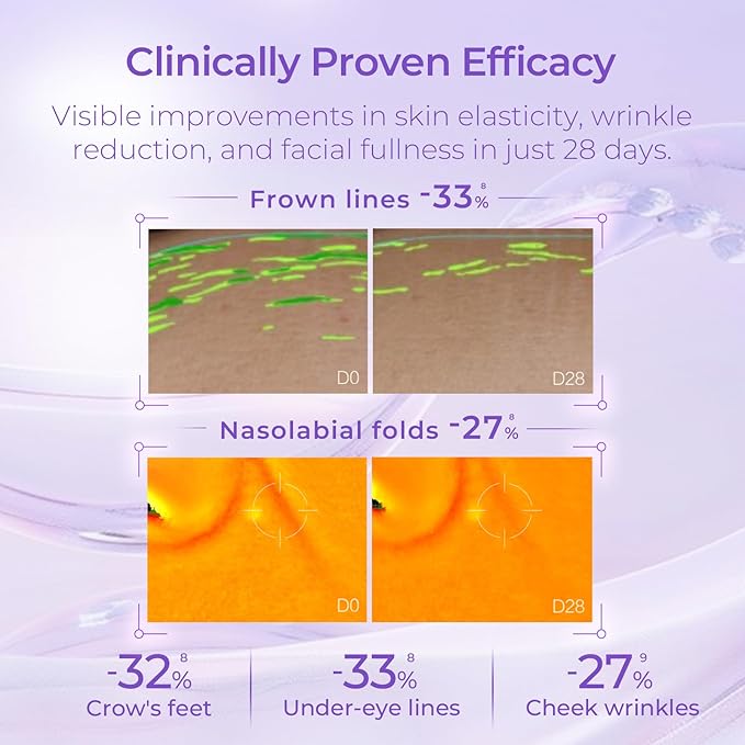 - Clinically Tested and Proven Our serum is backed by clinical studies showing significant improvements in skin texture, elasticity, and appearance within just 28 days. Trusted by 97% of users for its effective anti-aging results.