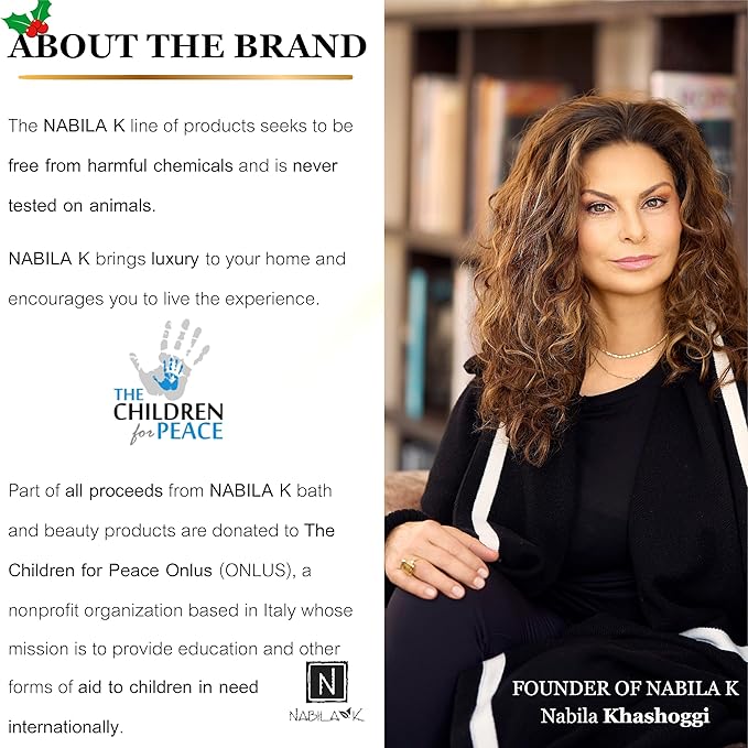 - Ethically Sourced and Cruelty-Free: Our bath salts are ethically sourced and cruelty-free, made in the USA. Available in both 2 oz and 8 oz jars. A portion of all proceeds from Nabila K bath and beauty products is donated to The Children for Peace Onlus (ONLUS), a nonprofit organization based in Italy dedicated to providing education and aid to children in Third World countries.
