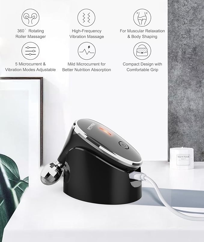 Micro-Current-Facial-Device, 5-in-1 Facial Roller Massager for Skin Care at Home, Face Massager Tool, Black