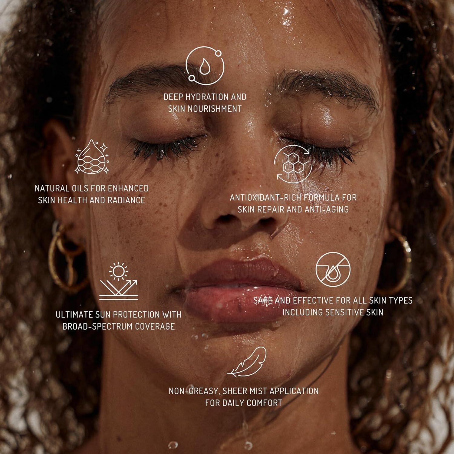 - [Deep Hydration Meets Sun Protection with Botanical Skin Support] - More than just sun protection, this mist is infused with nourishing ingredients like Aloe Vera, Calendula Flower Extract, and Bisabolol to soothe inflammation, reduce redness, and replenish moisture lost under sun exposure. The result is a spray sunscreen SPF 50 that doubles as a hydrating facial mist, helping skin feel calm, cool, and comforted all day long.