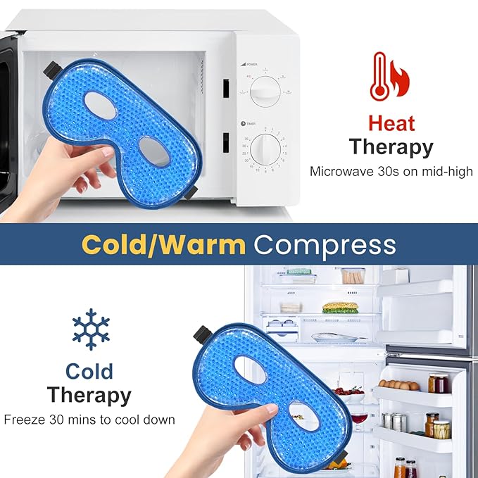 - 【Hot & Cold Therapy, Super Quick & Easy to Prepare】For cold therapy, just put ice eye mask for puffiness into the reusable storage bag & freeze for 45 mins to cool down. BeeVines 2 pack XL cooling gel eye masks for puffy eyes are ideal for cold compress in the morning after wakeup. For dry eyes, you can also use it for warm compress: just microwave on Medium-high/High power for around 20s & add 5s each time & check if gel eye mask is warm enough for warm eye relief. Don't heat for over 1 min!