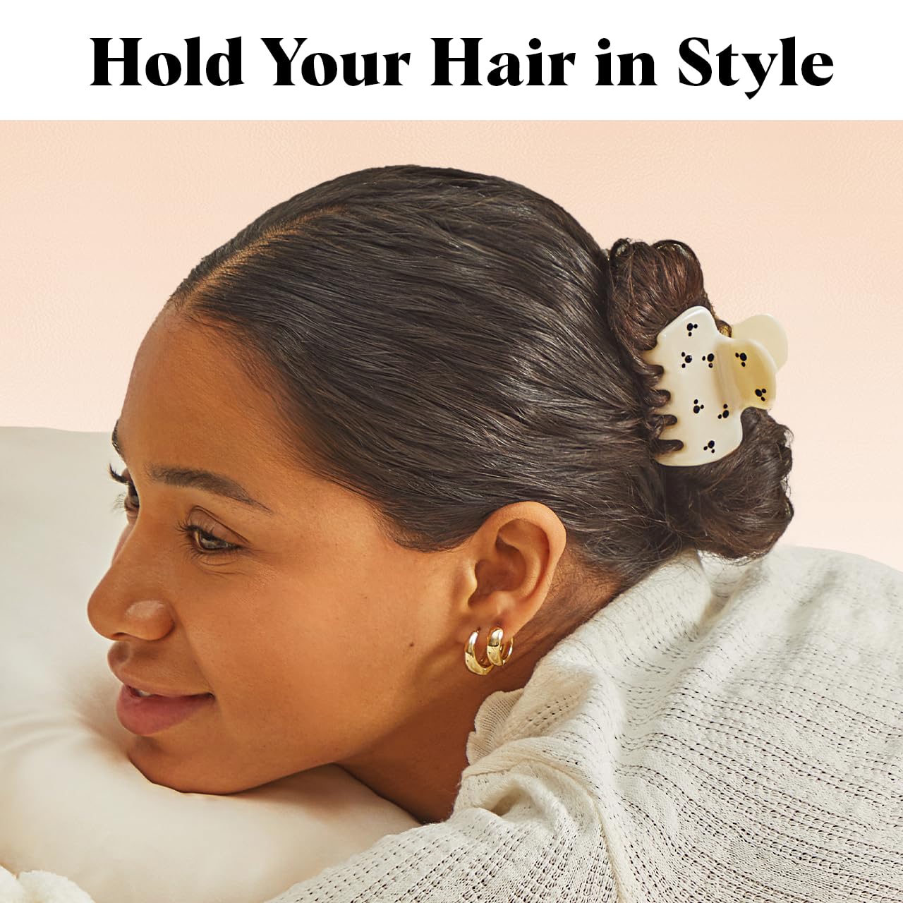 Kitsch & Mickey/Minnie Hair Claw with Rhinestones, Cute and Elegant Claw Clips for Girls, Great for All Hair Types, Recycled Plastic | Ideal Gifts for Women - 1pc (Cream)