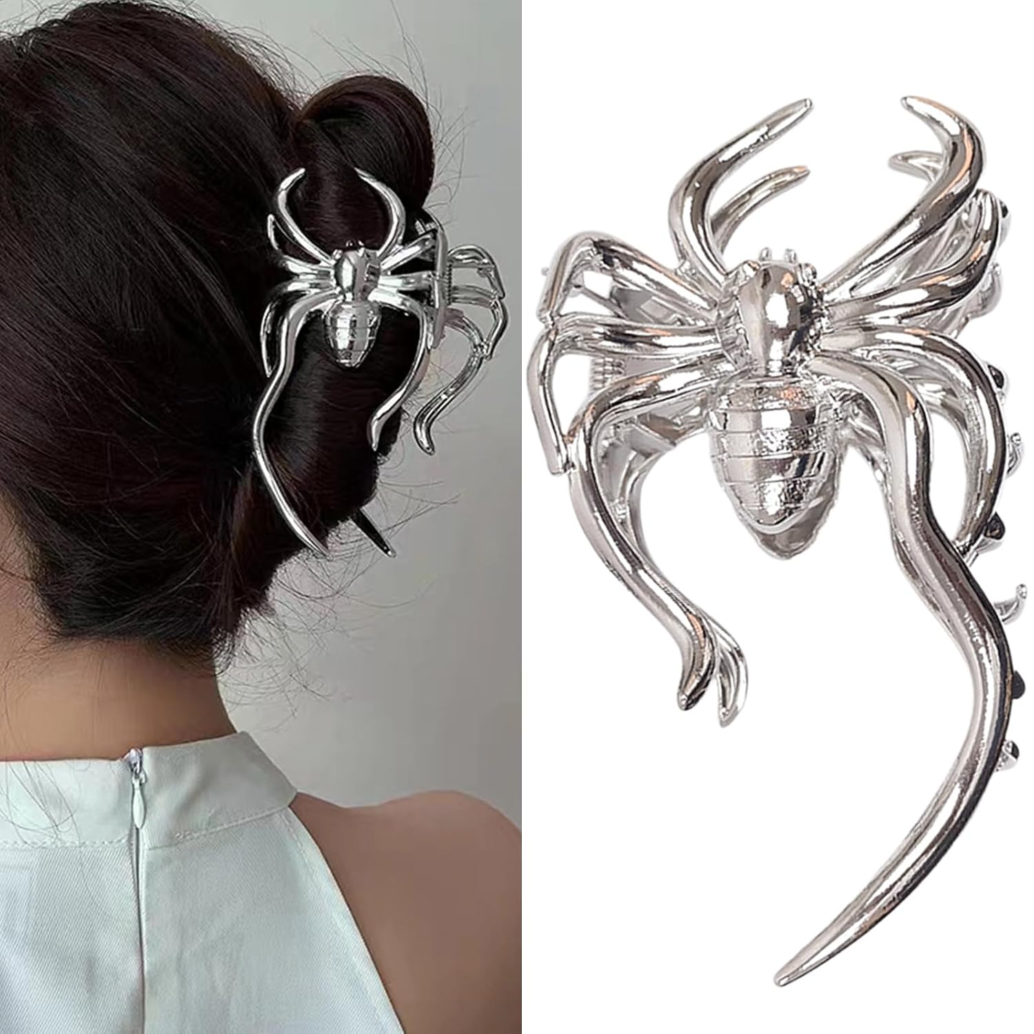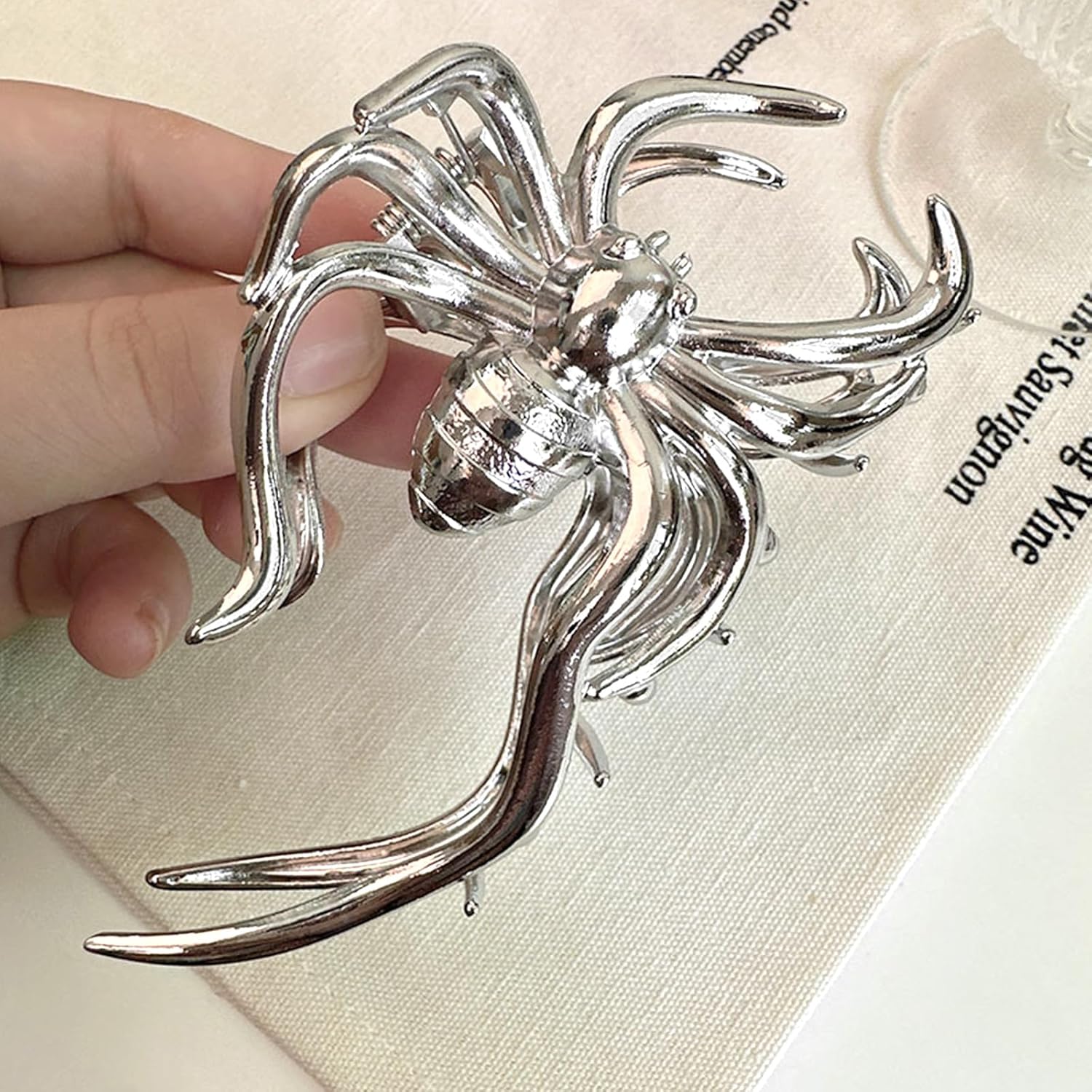 Halloween Spider Hair Claw Clips - Metal Silver Alloy Nonslip Terror Strong Hold Gothic Punk Spider Style 2