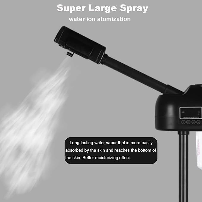 - Convenient Design: Freestanding facial steamer with an adjustable rob and rolling base for optimal positioning. The adjustable height(38"-47.83") and 360° rotating nozzle allows you to complete your facial spa at multiple angles and heights conveniently. Mounted on smooth-rolling casters, enabling easy movement from room to room.