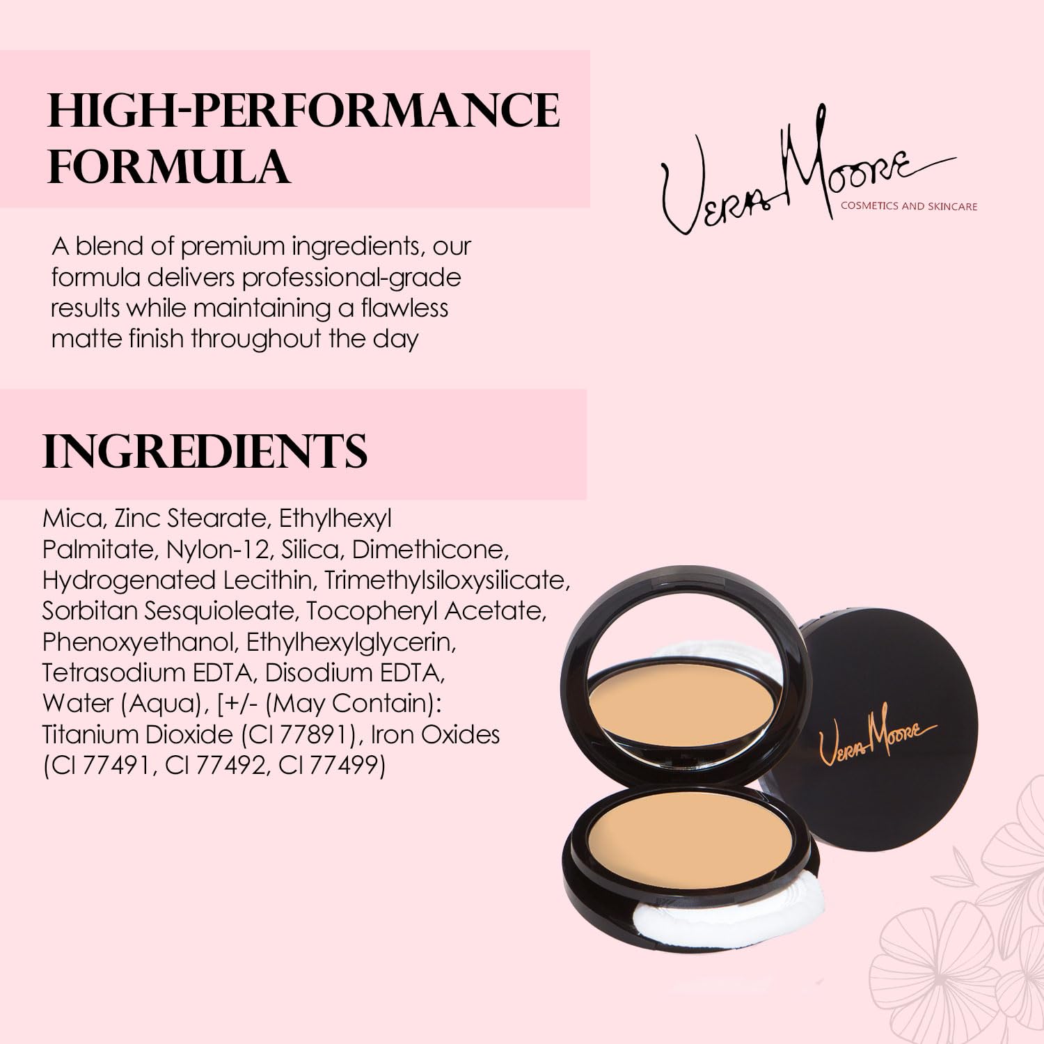 Vera Moore Matte Pressed Powder, Makeup Setting Compact Powder, Face Powder for Full Coverage with Flawless Finish, Shine, Matte Finish for All Skin Types (Café Au Lait, 12.5g)